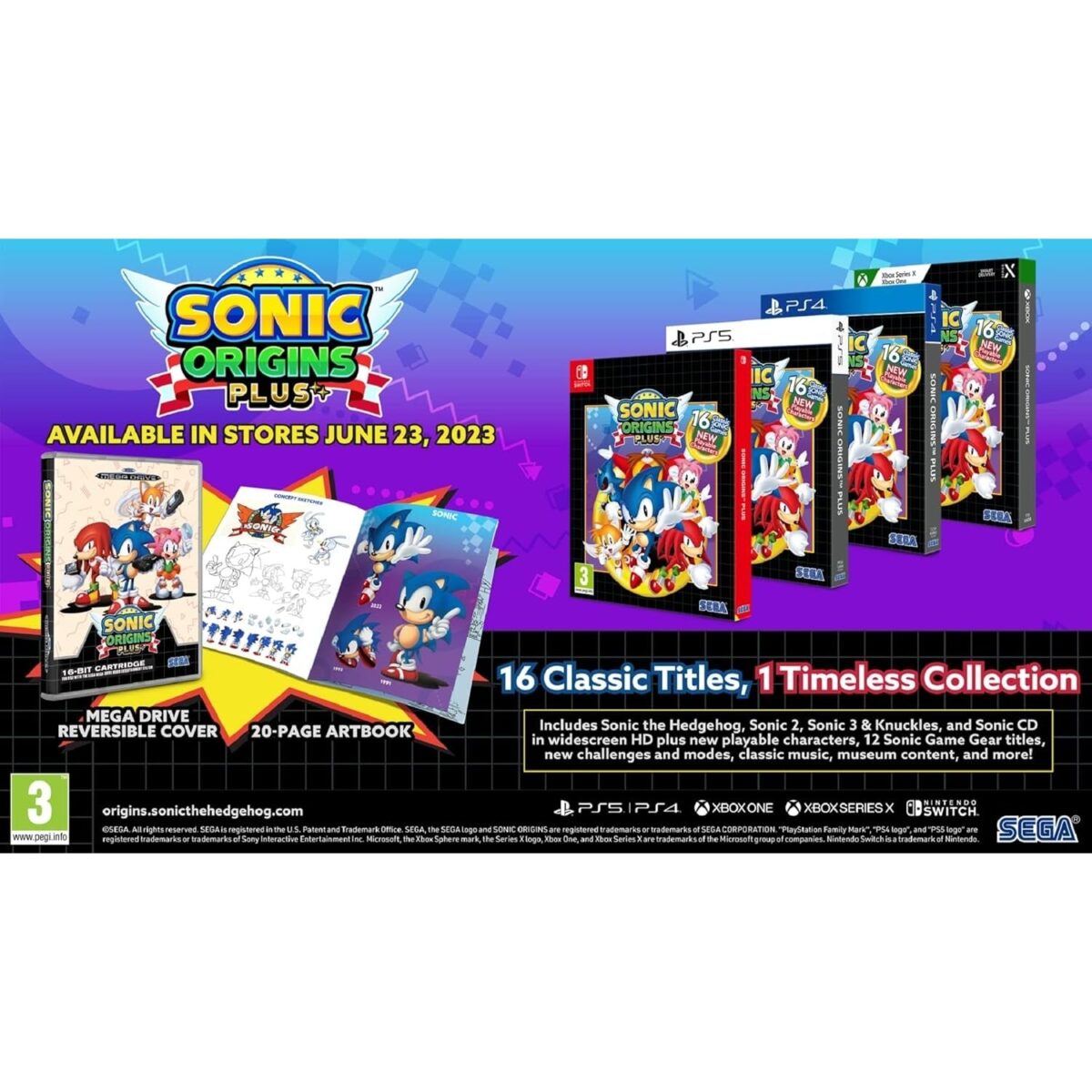 • Sonic Origins Plus brings you the ultimate Sonic the Hedgehog collection with 16 classic titles, including 12 Sonic Game Gear games. Whether you’re reliving nostalgic moments or experiencing these iconic adventures for the first time, this is the definitive way to play! Featuring new playable characters and modes, this collection is a must-have for any Sonic fan.